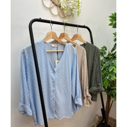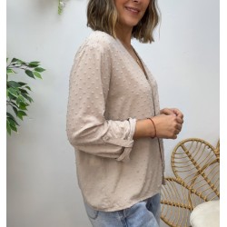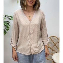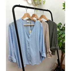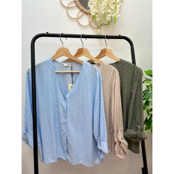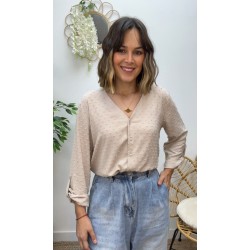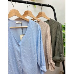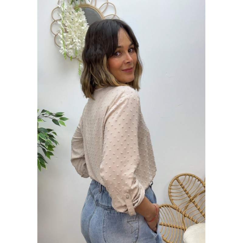 Camisa de plumeti con cuello en pico y manga ajustable.