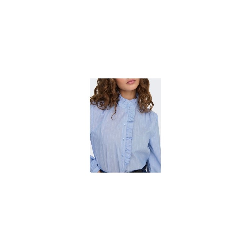 Camisa cuello mao con volante en el propio cuello y hasta mitad de camisa.