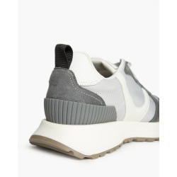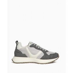 Deportivo con tejido impermeable y detalles en ante en la punta, zona de los cordones y talón.