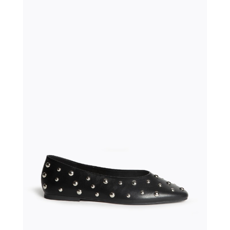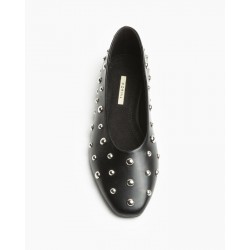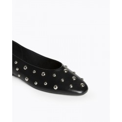 Bailarina plana. Punta redonda, escote redondo. Detalle de tachas redondas.