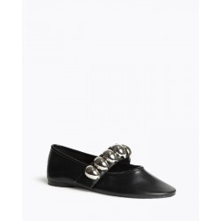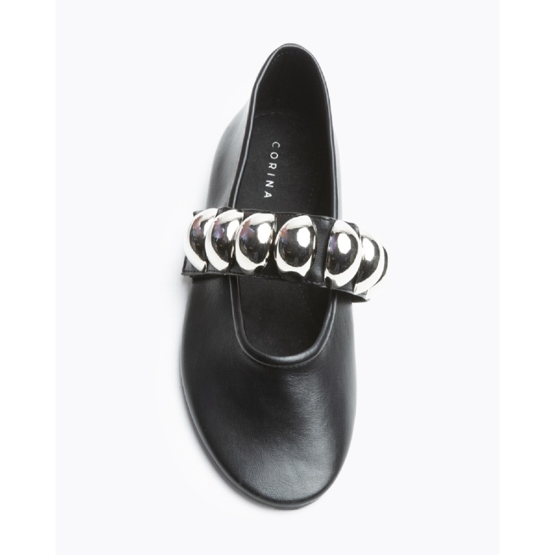 Bailarina plana tipo Mary Jane. Cierre mediante velcro con una tira en lateral del empeine, tira con detalles plateados. Acabado en punta redonda.