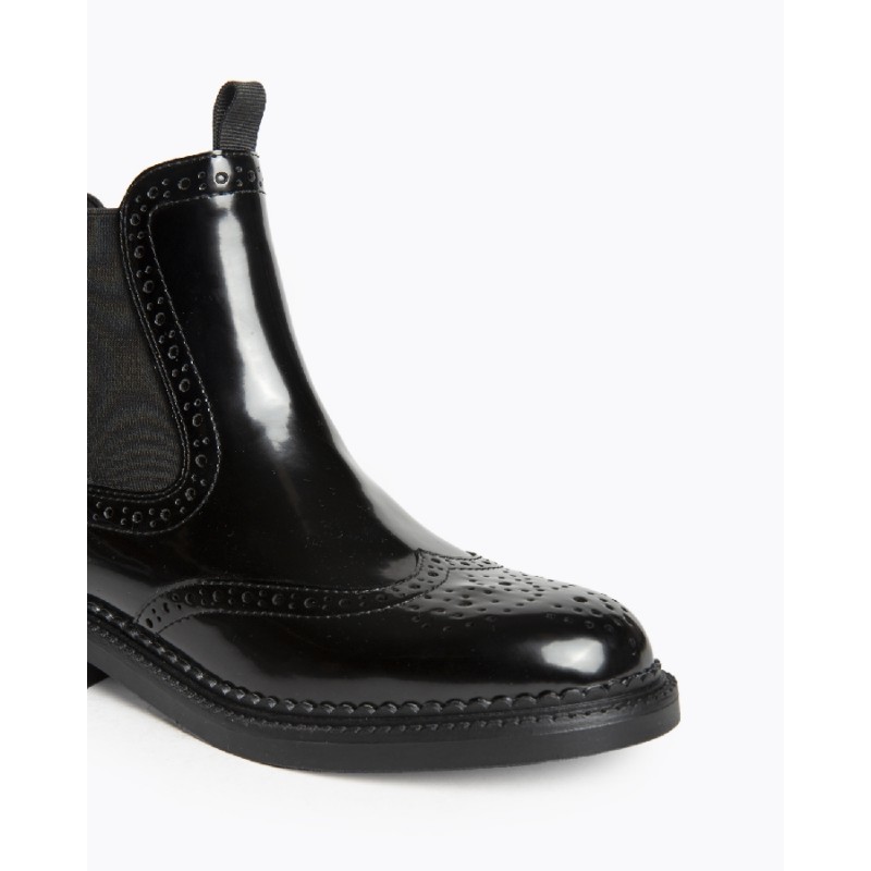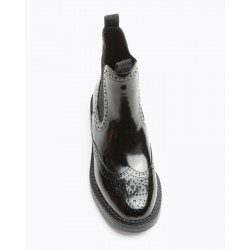 Botín tipo chelsea, de la marca Corina, fabricado en material acharolado con diseño perforado. Detalles elásticos laterales. Plantilla acolchada. Suela de goma con tacón de 2 cm.