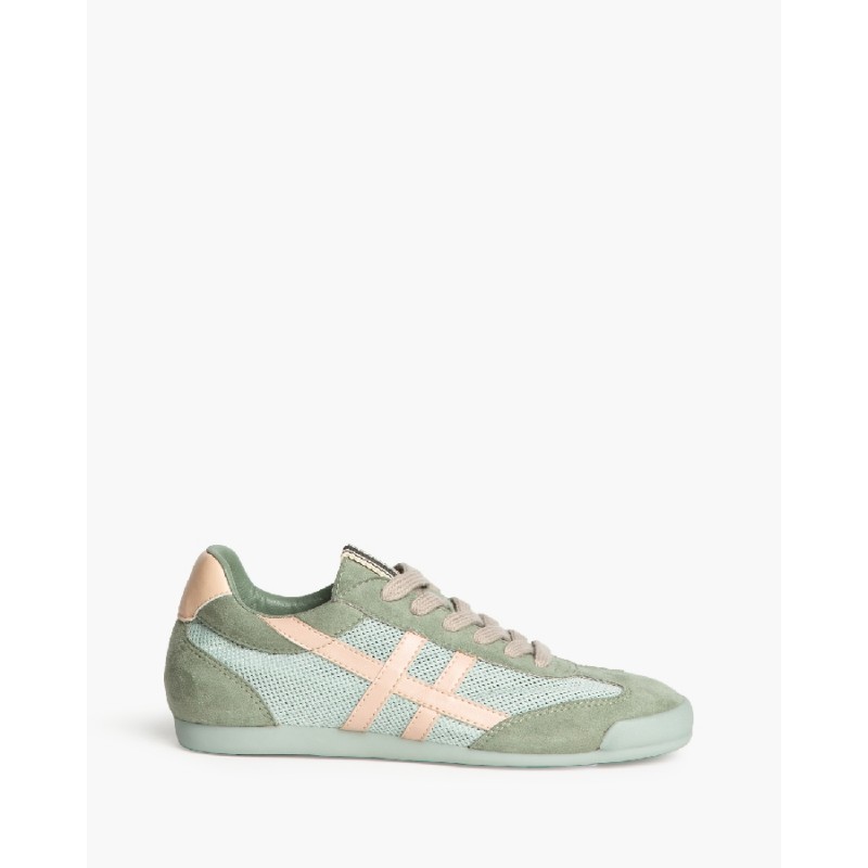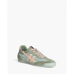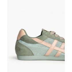 Zapatilla deportiva estilo retro en combinación de materiales. Con rejilla y cierre mediante cordones de siete pasadas.