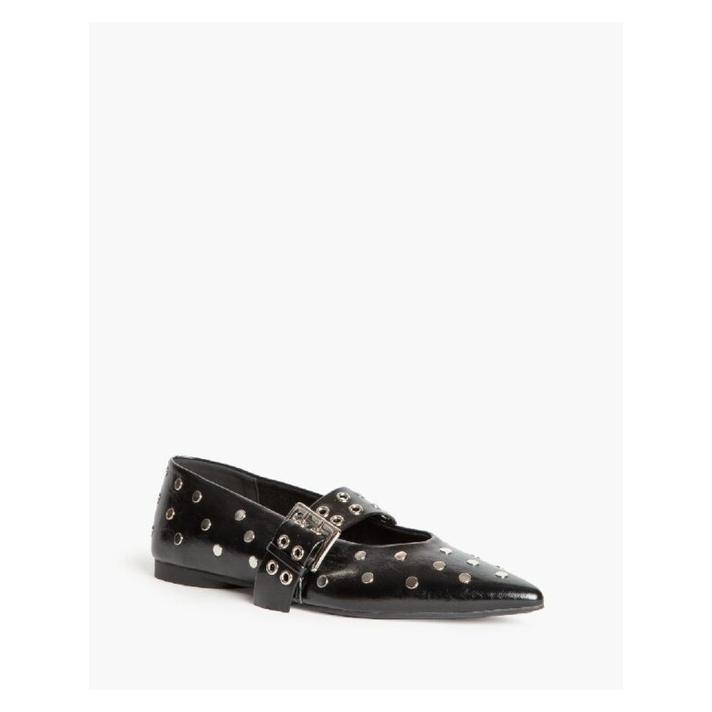 Las bailarinas de tachuelas es un calzado cómodo, versátil y con un toque rebelde estas son perfectas para ti, este zapato plano combina la elegancia clásica de las bailarinas con un diseño moderno lleno de personalidad, gracias a las tachuelas plateadas que cubren toda la superficie del zapato.