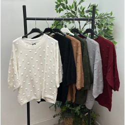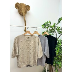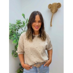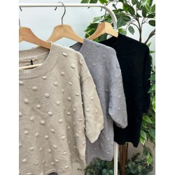 Jersey de punto con cuello redondo y manga corta de corte oversize y topitos en relieve.